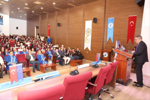 Açılış dersinin ardından Dr. Lale Şıvgın Dündar’a teşekkür eden Rektör Prof. Dr. Ahmet Kutluhan günün anısına plaket takdiminde bulundu.