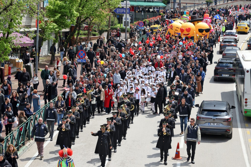Cumhuriyetimizin kuruluş adımlarının atıldığı, milli egemenliğimizin ilan edildiği ve çocuklara armağan edilen 23 Nisan Ulusal Egemenlik ve Çocuk Bayramı, tüm Türkiye’de olduğu gibi Bursa’da da büyük bir coşkuyla kutlandı. Bursa Büyükşehir Belediyesi tarafından ‘Atatürk’ün Armağanıyla Geleceği Yaşatıyoruz’ temasıyla düzenlenen, ‘Çocuk Şenliği’, dolu dolu içeriğiyle çocuklara eğlence dolu bir gün yaşattı.