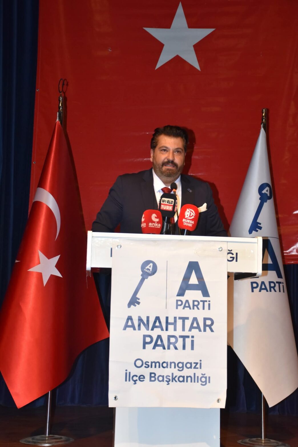 Anahtar Parti Osmangazi 1. Olağan Genel Kurulu, siyasetin nabzını sert biçimde yükselten mesajlara sahne oldu. Osmangazi’de ilçe yönetiminde bayrak değişimi resmileşirken, Hasip Yavuz Burak’tan görevi devralan İsmail Demir, parti teşkilatının bundan sonraki rotasına ilişkin çarpıcı ve iddialı sözler sarf etti.