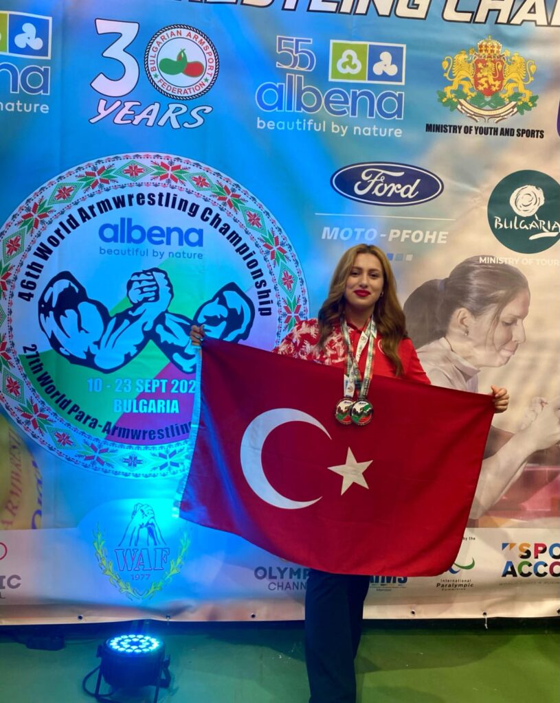 10-16 Eylül tarihlerinde Bulgaristan’da düzenlenen Dünya Bilek Güreşi Şampiyonası’nda ülkemizi ve Ardahan’ı temsil eden başarılı sporcumuz Aybüke Yıldız, tarihi bir başarıya imza attı. Sol kolda Dünya ikincisi olan Yıldız, sağ kolda ise Dünya üçüncülüğü elde ederek şampiyonadan bir gümüş ve bir bronz madalya ile ayrıldı.