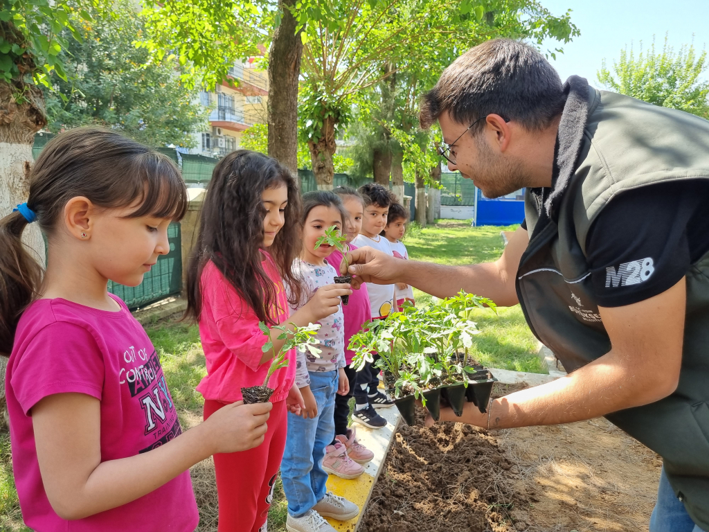 Tarımsal Hizmetler Dairesi Başkanlığı’nın personeliyle birlikte yapılan etkinlikte çocuklara Ata Tohumlarının önemi de anlatıldı. Dikimin nasıl yapılacağı çocuklara uygulamalı olarak gösterilirken, sorumluluk bilincinin gelişimine katkı sağlaması için fidelerin bakımını çocuklar üstlenecek.