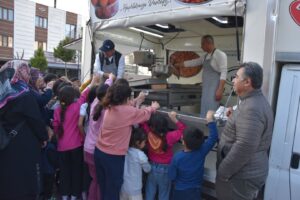 Depremzede çocuklar ile yakından ilgilenen Aksoy, çocuklara çeşitli hediyeler vererek sevindirdi. Depremzede ailelerle de uzun uzun sohbet etti.