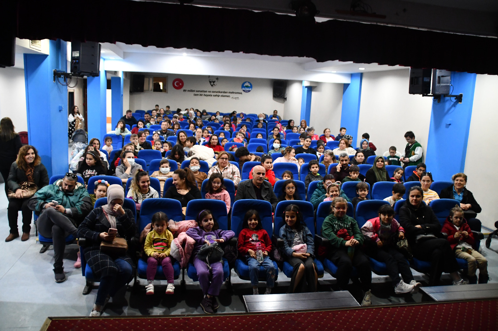 Söke Belediyesi Kültür ve Sosyal İşler Müdürlüğü tarafından organize edilen yarıyıl etkinlikleri, Geleneksel Türk Gölge Oyunu Ustası Suat Veral ve Türkiye’nin ilk kadın Karagöz Sanatçısı Merve İlken’in sahnelediği Hacivat ve Karagöz gölge oyunu ile başladı. Söke Belediyesi Vali Recep Yazıcıoğlu Kültür Salonu’nda ücretsiz olarak gerçekleşen etkinlikler, öğrencilere unutulmaz anlar yaşatıyor.