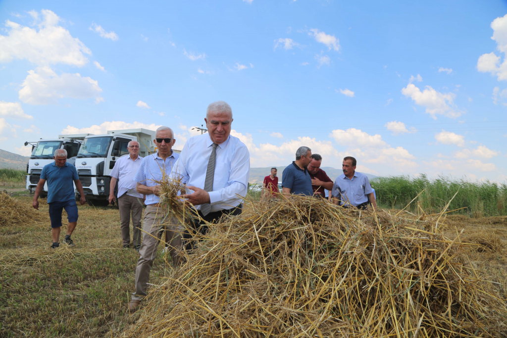 Efeler Belediye Başkanı Mehmet Fatih Atay, Efeler Belediyesi’nin kendi arazisinde toprakla buluşturduğu ekmeklik buğdayın ilk hasadını yaptı. Efeler Belediyesi’nin tarım arazilerini üretime açan Başkan Atay, Alanlı Mahallesi’ndeki toplamda 100 dönüm arazide ekmeklik buğday yetiştirdi. Geçen yıl Kasım ayında ekimi yapılan buğdayların hasadını gerçekleştiren Başkan Atay, Alanlı Mahallesi’ndeki vatandaşlarla da bir araya geldi. Mahalle sakinleriyle oldukça samimi bir ortamda sohbet eden Başkan Atay, vatandaşların talep ve önerilerini dinleyip, sadece kadınların istihdam edildiği %100 Kadın Emeği Tarımsal Ürün Fabrikası gibi hayata geçirilen projeler hakkında bilgiler verdi. “Fabrikamızda konserveler yapacağız, katma değer elde edeceğiz, istihdam yaratacağız. Anlaşmalı çiftçilik yapalım, siz üretin, biz Efeler Belediyesi olarak fabrikada işleyelim ve vatandaşlarımızın tüketimine sunalım.” diye konuşan Başkan Atay, Işıklı Mahallesi’nde yetiştirilen karakılçık buğdayının da hasat edildiğini ve yaklaşık 2 buçuk ton verim alındığını söyledi.
