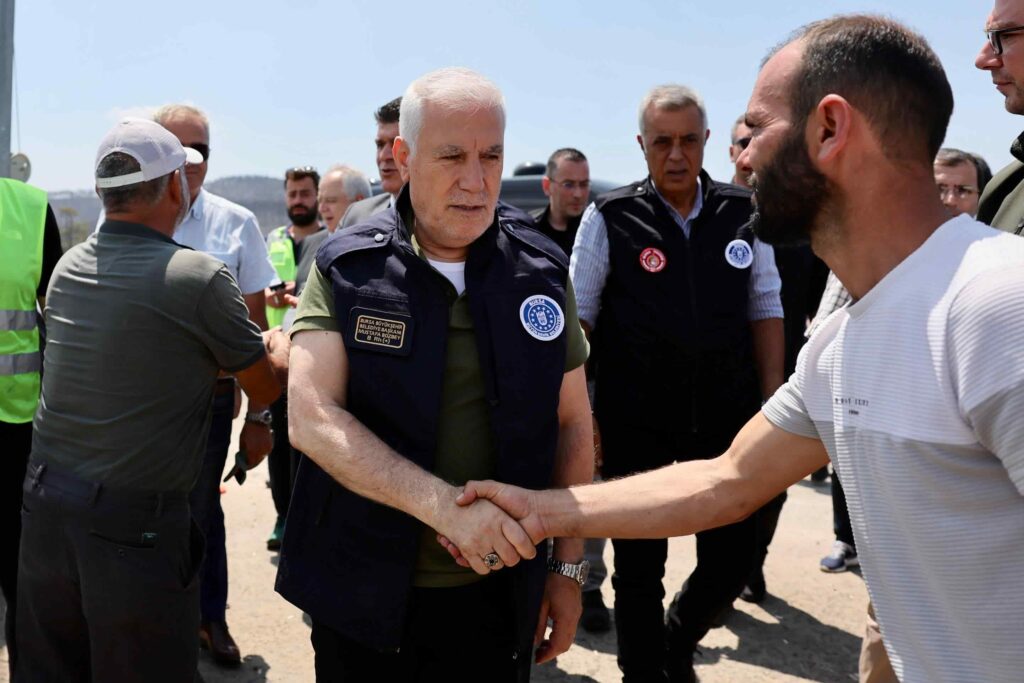 Bursa’da 5 gün boyunca etkili olan orman yangınlarını söndürme ve soğutma çalışmaları tüm hızıyla sürerken, Harmancık ilçesindeki ormanlık alanda dumanların yeniden yükselmesi yürekleri ağızlara getirdi. Ekipler yangın bölgesine hızla ulaşarak alevleri söndürmek için harekete geçerken, Bursa Büyükşehir Belediye Başkanı Mustafa Bozbey de gelişmeleri Harmancık ilçesinde yerinden takip etti. Soğutma çalışmalarını yerinde gözlemleyerek ekiplerden bilgi alan Başkan Mustafa Bozbey, daha sonra Harmancık Belediye Başkanı Haşim Ali Arıkan ile birlikte yangından etkilenen Çamoğlu, Çakmak ve DUtluca köylerini ziyaret etti. Vatandaşlara geçmiş olsun dileklerini ileten Başkan Mustafa Bozbey, halkın ihtiyaç ve taleplerini birinci ağızdan dinledi.