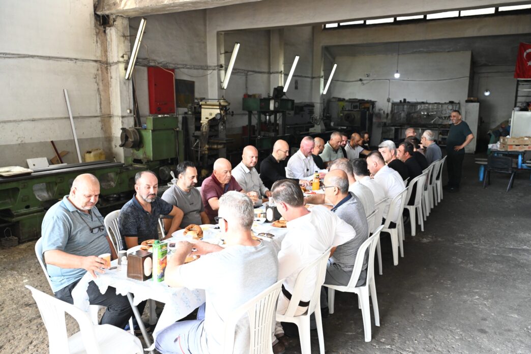 Sanayi esnaflarından Ayhan Kınalı’nın dükkanında gerçekleşen kahvaltı programı yoğun katılımla