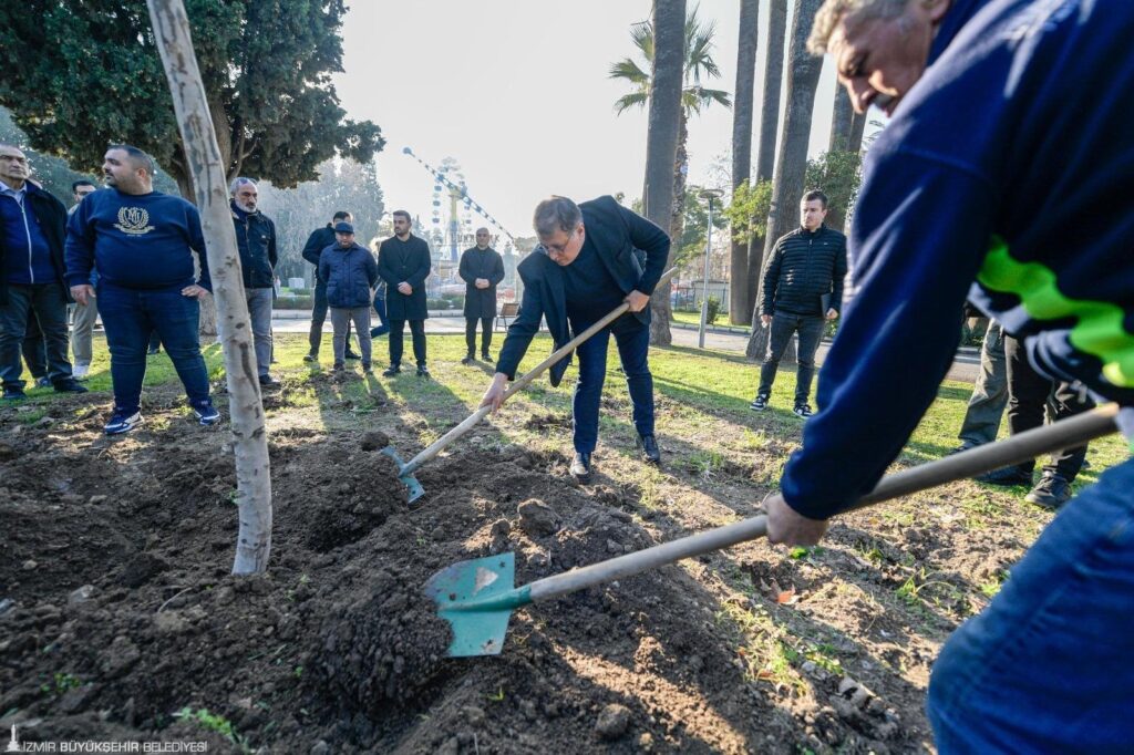 Başkan Tugay, konuşmasının devamında İzmir Büyükşehir Belediyesi’nin Kültürpark’ta yürüttüğü ve yapmayı planladığı çalışmalar hakkında bilgi verdi. Kültürpark’taki yeşil alanların artırılması için kararlılık mesajı veren Başkan Tugay, “Kültürpark hepimiz için çok değerli bir alan. Yeşil dokusunun korunması, geliştirilmesi çok önemli. Hiç kimsenin itirazı yok. Detaylarda konuşulacak birçok şey çıkıyor. Mesela altına yeni bir otopark alanı yapmak doğru değil. Benim kendi kesin ve kati görüşüm, belediyemizin hizmet alanı olarak kullandığı hollerin tamamen kalkması yönünde. Bitmez deniyor ama bitecek. Üç farklı lokasyonda belediyemizin hizmet noktası olacak. Biri eski yerinde Konak’ta, diğeri Yenişehir’de, bir de kafamda tasarladığım sürpriz olacak başka bir yerde. Hepsi de yerli yerine oturuyor, hiçbir sorun yok. Hollere gerek yok. Kültürpark, kentin akciğeri, spor alanı, sosyalleşme alanı. Kültürel etkinliklerin olduğu alanlar olarak mutlaka kalmalı. Ben bunları hepimizin ortak görüşü olarak görüyorum. Kaldırabildiğimiz kadar gereksiz yapıyı, eklentiyi kaldıracağız. Yerine de yapabildiğimiz kadar yeşil alan yapacağız. Mevcut ağaç dokusunu geliştirmek için çalışacağız” ifadelerini kullandı.
