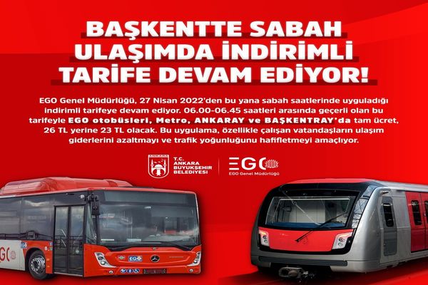 indirimli tarifeyle, EGO Genel Müdürlüğüne ait otobüs ve raylı sistemler