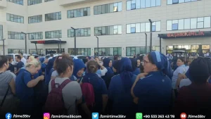 Bayraklı Şehir Hastanesi’nde çalışan taşeron işçiler maaşların yetersizliği ve çalışma saatlerinden kaynaklı olarak iş bırakma eylemine başladı.