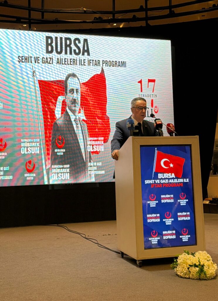 Büyük Birlik Partisi (BBP) Bursa İl Başkanlığı tarafından Ramazan ayının manevi atmosferinde düzenlenen iftar programında şehit aileleri ve gaziler bir araya geldi. Bursa’da gerçekleştirilen anlamlı buluşma, birlik ve beraberlik vurgusunun ön plana çıktığı, şehit ve gazilerin millet nezdindeki öneminin bir kez daha hatırlatıldığı özel bir geceye sahne oldu.