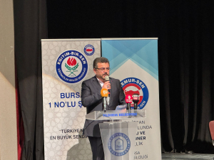 Cümlesine şiirle başlayan Eğitim Bir Sen Bursa 1 Nolu Başkanı Remzi Ayaz, kitap okuma oranının artması için elimizden geldiğince destek olmaya çalıştık. Bu duygularla programımıza emek veren başta danışman öğretmenlerimize, öğrencilere ve Yıldırım Belediye Başkanı Oktay Yılmaz’a teşekkür ediyor ve saygılarımı sunuyorum dedi. Memur Sen Bursa İl Temsilcisi Ramazan Acar teşekkürlerini sunarak cümlesine başlarken, ayrıca şu ifadeleri kullandı; Filistin’de can pazarı yaşanıyor, kahrolsun İsrail ve ona destek olan kişiler. Elimizden gücümüzden ne gelirse biz Filistin’e destek olacağız. Bugün hakkında konuşmak gerekirse, ne kutlu bir mirasa sahip olduğumuzu bir kez daha hatırlamış oluyoruz. Hazinelerden oluşan bir okuma eylemi bir mekanın adıdır genç memur sen. Bu yüzden emeği geçen herkese teşekkürlerimi sunuyorum. Bizler yola çıkılırken gençlerimize kalemini ve kelamını kuvvetlendirmelerini amaçlamaktayız. İnanıyoruz ki hu çalışmalar gençler için bir kıvılcıma sebep olacaktır ve gelecekte bir cevher çıkaracaktır.