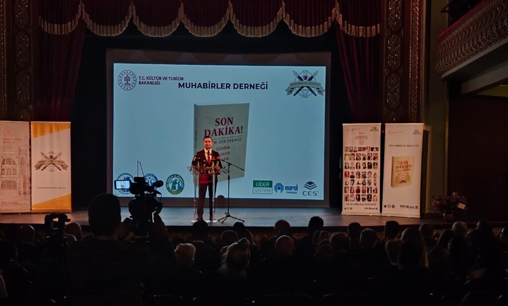 Yalnızca bir kitabı tanıtmadıklarını, bu mesleğe adanmış hayatları, sahadaki acıları, umutları ve gerçeğin peşinde verilen mücadeleyi geleceğe taşıdıklarını ifade eden MUHABİR-DER Başkanı Berrin Yücesan, “’Son Dakika – Bizim Hikayemiz: Gördük, Yaşadık, Yazdık’ 42 gazetecinin sahada yaşadıklarının ortak sesidir. Yağmurun, karın altında, enkazın başında, savaş alanlarında, kimi zaman hayatı pahasına gerçeğin izini süren meslektaşlarımızın kaleminden dökülen hakikatin sesidir. Çünkü sahada attığımız her adım yalnızca bir haber değil, aynı zamanda bir insanlık görebilir bu geceyi özellikle Filistin’de gerçeği dünyaya duyurmaya çalışırken şehit olan, yaralanan tüm gazeteci meslektaşlarımıza adıyoruz. Onların cesareti bize bu mesleğin kutsallığını ve ağırlığını bir kez daha hatırlatıyor” diye konuştu.