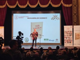 Yalnızca bir kitabı tanıtmadıklarını, bu mesleğe adanmış hayatları, sahadaki acıları, umutları ve gerçeğin peşinde verilen mücadeleyi geleceğe taşıdıklarını ifade eden MUHABİR-DER Başkanı Berrin Yücesan, “’Son Dakika – Bizim Hikayemiz: Gördük, Yaşadık, Yazdık’ 42 gazetecinin sahada yaşadıklarının ortak sesidir. Yağmurun, karın altında, enkazın başında, savaş alanlarında, kimi zaman hayatı pahasına gerçeğin izini süren meslektaşlarımızın kaleminden dökülen hakikatin sesidir. Çünkü sahada attığımız her adım yalnızca bir haber değil, aynı zamanda bir insanlık görebilir bu geceyi özellikle Filistin’de gerçeği dünyaya duyurmaya çalışırken şehit olan, yaralanan tüm gazeteci meslektaşlarımıza adıyoruz. Onların cesareti bize bu mesleğin kutsallığını ve ağırlığını bir kez daha hatırlatıyor” diye konuştu.