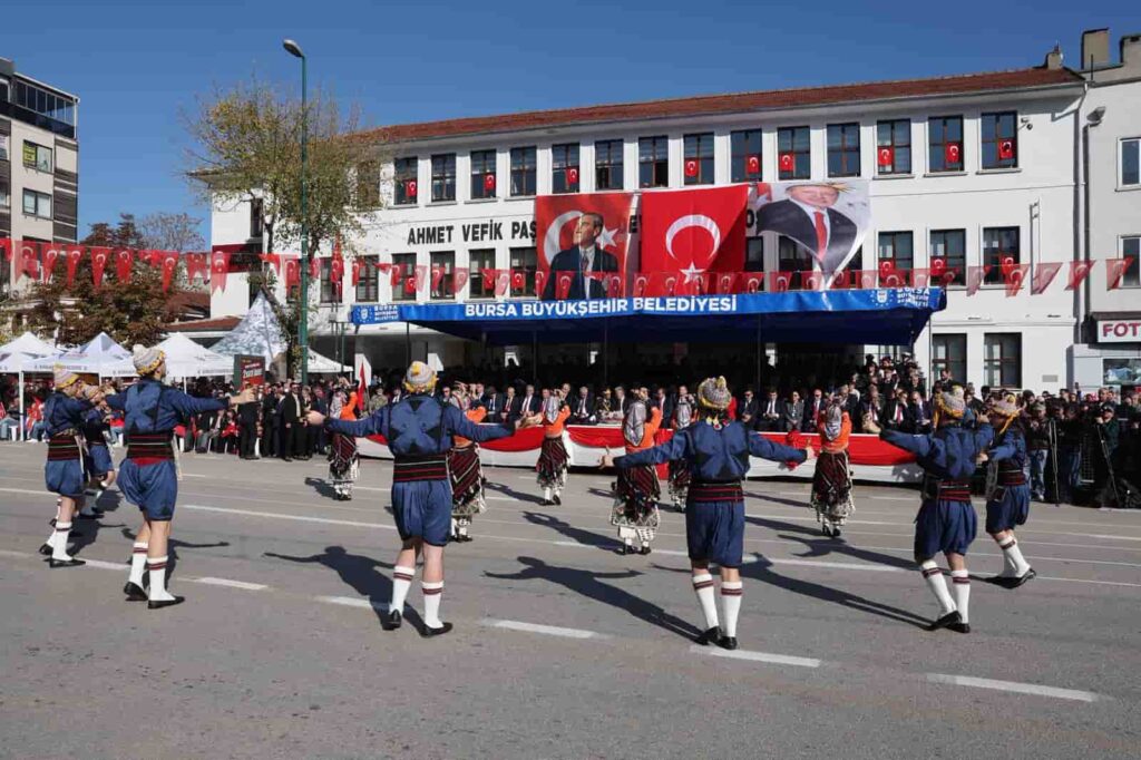 Yıldırım Belediyesi ve Bursa Uludağ Üniversitesi halk oyunları ekiplerinin, mehteran takımının ve kılıç kalkan gösterisinin büyük ilgiyle izlendiği program, tören geçişinin ardından tamamlandı. Balıkesir 9. Ana Jet Üs Komutanlığı’na bağlı F-16 savaş uçaklarının Bursa semalarındaki gösteri uçuşu da hayranlıkla izlendi.