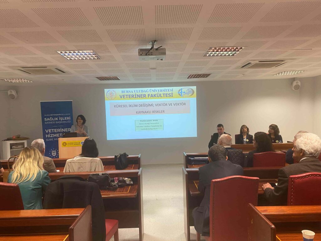 Bursa Büyükşehir Belediyesi Veteriner İşleri Dairesi Başkanlığı Veteriner Hizmetleri Şube Müdürlüğü’nün ev sahipliğinde, Bursa Dişhekimleri Odası, Bursa Eczacı Odası, Bursa Tabip Odası ve Bursa Veteriner Hekimler Odası iş birliği ile ‘İklim Krizi Kaynaklı Vektörel Hastalıklar Paneli’ gerçekleştirildi. Atatürk Kültür Merkezi Merinos Yerleşkesi’ndeki panele, Veteriner Hizmetleri Şube Müdürü Özlem Kartal, Bursa Veteriner Hekimler Odası Başkanı Melike Baysal, Bursa Uludağ Üniversitesi’nden Prof. Dr. Levent Aydın, Prof. Dr. Emel Yılmaz, akademik odaların temsilcileri ve vatandaşlar katıldı.