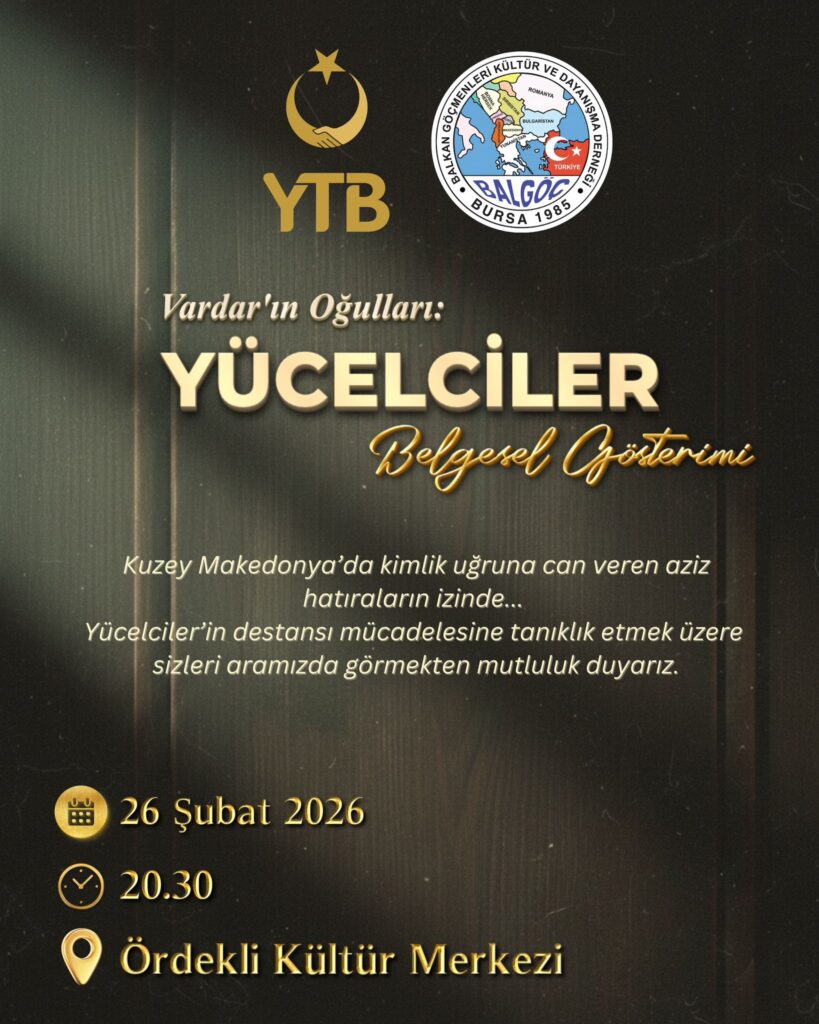 Yurtdışı Türkler ve Akraba Topluluklar Başkanlığı (YTB) ile Balkan Göçmenleri Kültür ve Dayanışma Derneği (BAL-GÖÇ) iş birliğinde düzenlenen gösterim, Ördekli Kültür Merkezi’nde gerçekleştirildi. Programa çok sayıda davetli ve vatandaş katıldı.