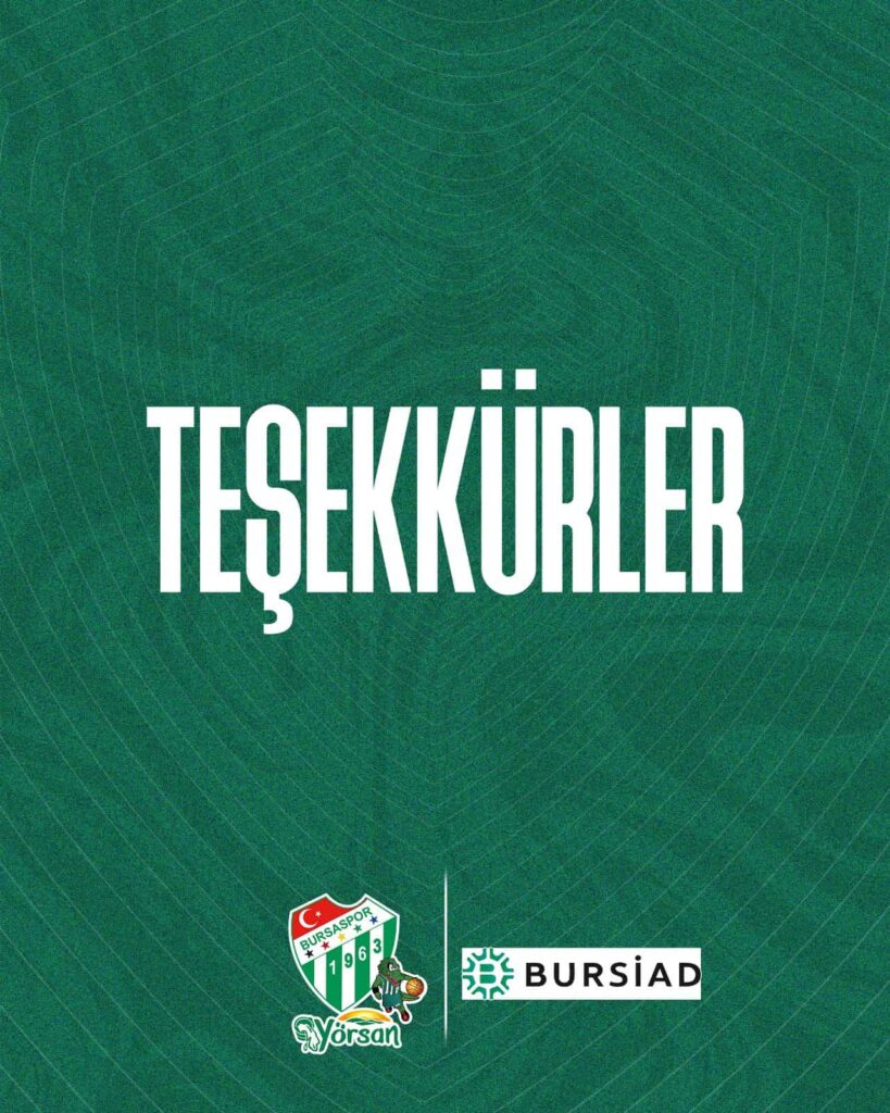 Bursaspor Yörsan takımımızın deplasman sponsoru, Bursasporlu Sanayici ve İş İnsanları Derneği (BURSİAD) ailesi olmuştur. Türk sporuna ve Bursaspor’umuza verdikleri kıymetli desteklerden dolayı BURSİAD Başkanı Sayın Enes Candemir’e ve yönetim kuruluna en içten teşekkürlerimizi sunarız.