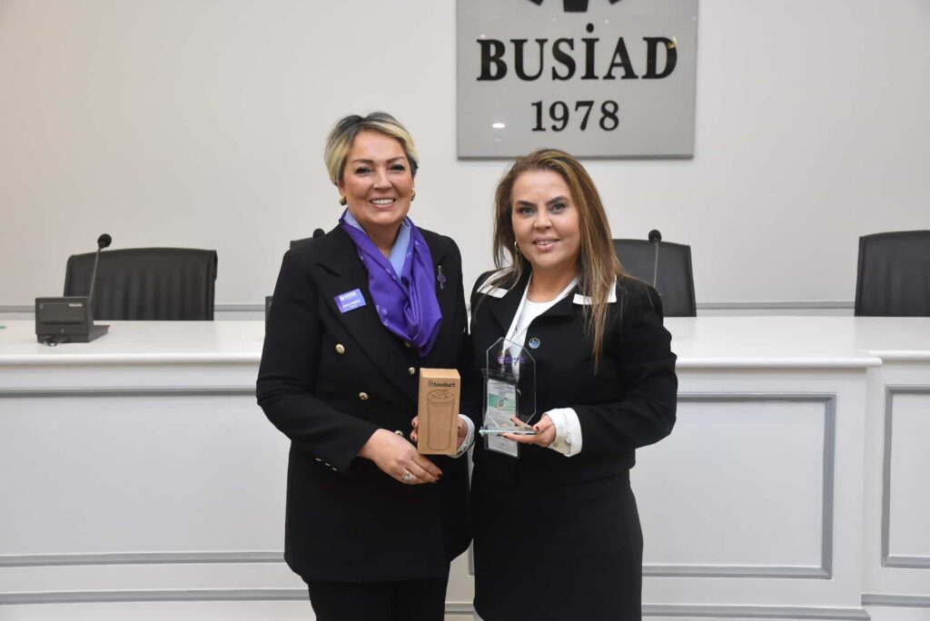 Konuşmaların ardından BUSADER Federasyonu Başkanı Zerrin Özgüle tarafından konuşmacılara teşekkür plaketi ve zeytin çekirdeklerinden yapılan termoslar hediye edildi. Bursa BUSADER Başkanı Elif Evke tarafından geri dönüşüme dikkat çekmek amacıyla gerçekleştirilen çekilişte promosyon ürünü olarak yaptırılan termoslar katılımcılara hediye edildi. Programın kapanışını Veteran BUSADER Başkanı Deniz Cantürk, tüm katılımcılara teşekkür ederek yaptı.