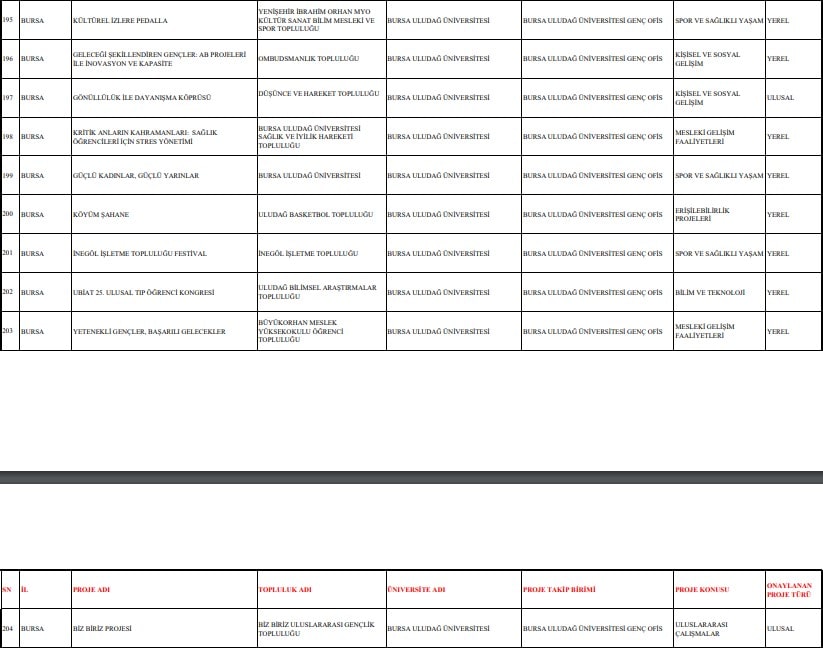 Genç ofislerin üniversite öğrenci topluluklarıyla etkileşimlerini artırmayı ve gençlerin gelişimine katkı sağlamayı hedefleyen programda BUÜ öğrenci topluluklarının gönderdiği 10 proje destek almaya hak kazandı. Yaklaşık 180 öğrenci topluluğuna sahip olan BUÜ’de faaliyet gösteren Yenişehir İbrahim Orhan MYO Kültür Sanat Bilim Mesleki ve Spor Topluluğu, Ombudsmanlık Topluluğu, Düşünce ve Hareket Topluluğu, Sağlık ve İyilik Hareketi Topluluğu, Tekvando Wing Chun Topluluğu, Uludağ Basketbol Topluluğu, İnegöl İşletme Topluluğu, Uludağ Bilimsel Araştırmalar Topluluğu, Büyükorhan MYO Öğrenci Topluluğu ve Biz Biriz Uluslararası Gençlik Topluluğu hazırladıkları projelere destek almayı başardı.