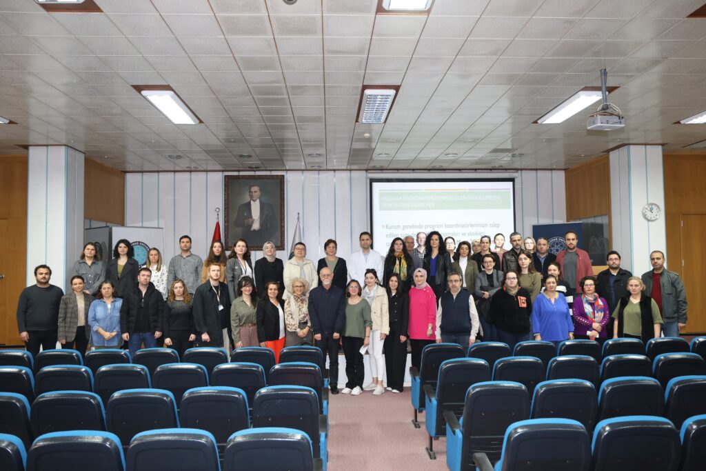 BUÜ Bologna Koordinatörlüğü, Nisan ayında gerçekleştirilecek genel değerlendirme süreci öncesinde kurumsal akreditasyon programı dış değerlendirme sürecine yönelik program koordinatörleri ile bir araya geldi. Bilgi İşlem ve Öğrenci İşleri Daire Başkanlıkları işbirliği ile yapılan toplantıda, Bologna Koordinatörü Prof. Dr. Nermin Bulunuz tarafından BUÜ’nün 2022 yılından bu yana içinde bulunduğu YÖKAK Kurumsal Akreditasyon süreci ve Nisan 2025 tarihinde gerçekleştirilecek Kurumsal Akreditasyon Programı Dış Değerlendirme süreci hakkında genel bilgiler verildi. Prof. Dr. Nermin Bulunuz ayrıca Bilgi Paketi & Ders Kataloğunda yapılması gereken düzenlemeleri uygulamalı bir şekilde katılımcılara aktardı.