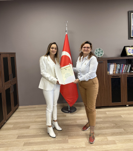 BUÜ’nün Araştırma Üniversitesi vizyonu çerçevesinde hazırlanan proje önerisi TÜSEB tarafından desteklenmeye layık görülen Doç. Dr. Burcu Erbaykent’e Fen-Edebiyat Fakültesi Dekanı Prof. Dr. Bilgen Osman tarafından teşekkür belgesi takdim edildi.