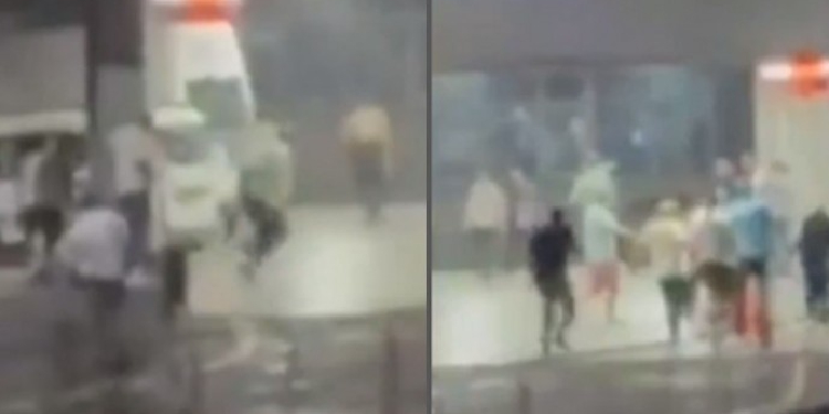 Protesto edenlerin kürsüden uzak tutulması için yapılan müdahalenin ardından gerginlik, kavgaya dönüştü.