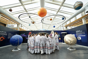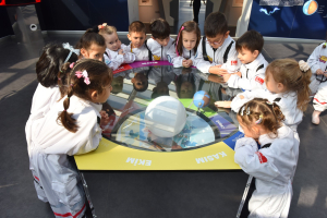 Çocuk Üniversitesi’nde minikler, astronot kıyafetleri giyerek uzay ve astronomi temalı sergi alanında bir astronotun 24 saatini gözlemliyor. Dünya’dan uzaya doğru çıkılan bu yolculukta yıldızları, karadeliğin gizemini, manyetik alanın ve mevsimlerin nasıl oluştuğunu, güneş sisteminde bulunan gezegenlerin sesleri ile Piri Reis ve Es-Sufi’nin haritalarını arttırılmış gerçeklik uygulamasını deneyimleme fırsatı bulan çocuklar, VR uygulaması ve döner illüzyonlar gibi eğitici deneyimlerle uzaydaki çeşitli fiziksel olayları anlama fırsatı buluyor.