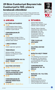 29 Ekim Cumhuriyet Bayramı ve Cumhuriyet’in 100. yılı tüm yurtta ve yurt dışı temsilciliklerde düzenlenen etkinliklerle kutlanıyor.