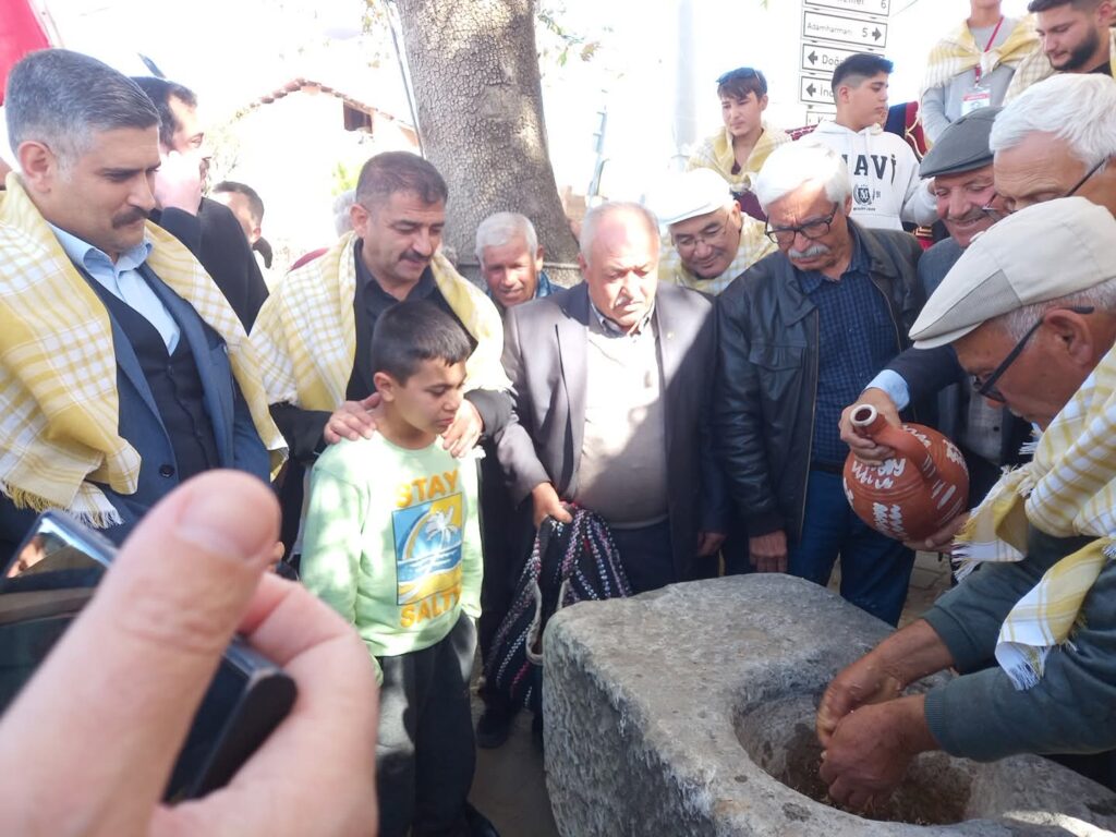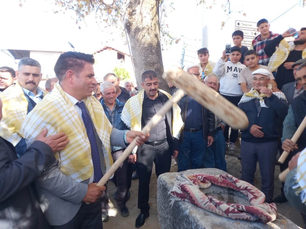 Eşekle birlikte eski döneme ait dibek taşına yanaşılarak, nostalji yaşatan gelenekte olduğu gibi eşeğin taşıdığı buğday taş havuza döküldü. Kaymakam, Belediye Başkanı ve Muhtar, ahşap tokmaklarla buğday dövdü.