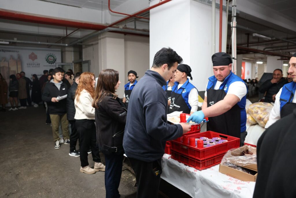 destekleriyle geleneksel olarak düzenlenen iftar programı her gün 3 bin kişiyi aynı