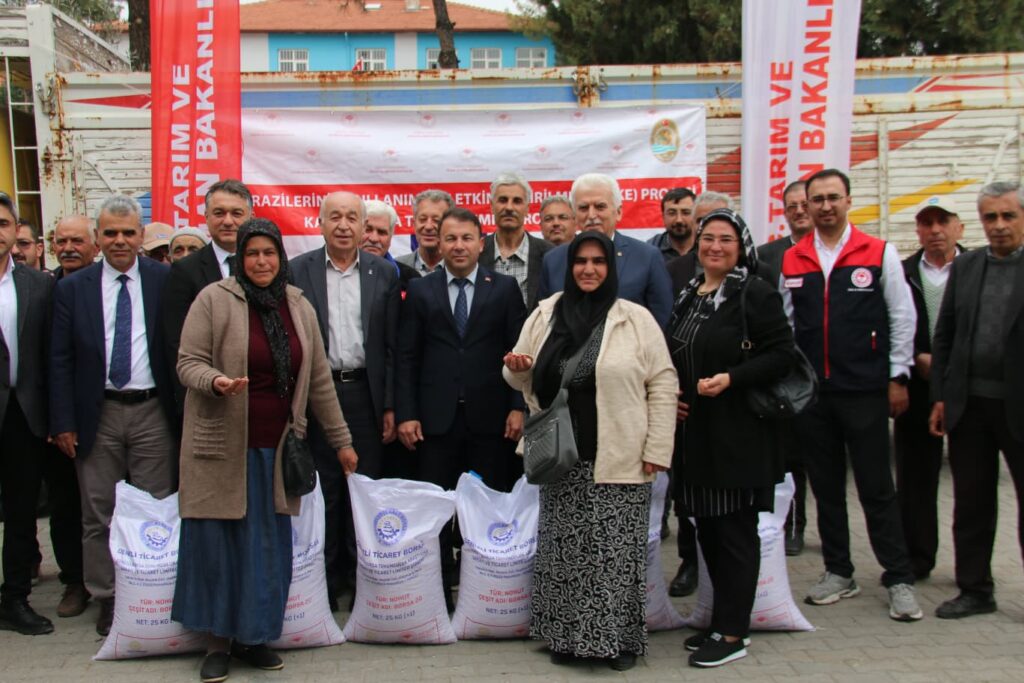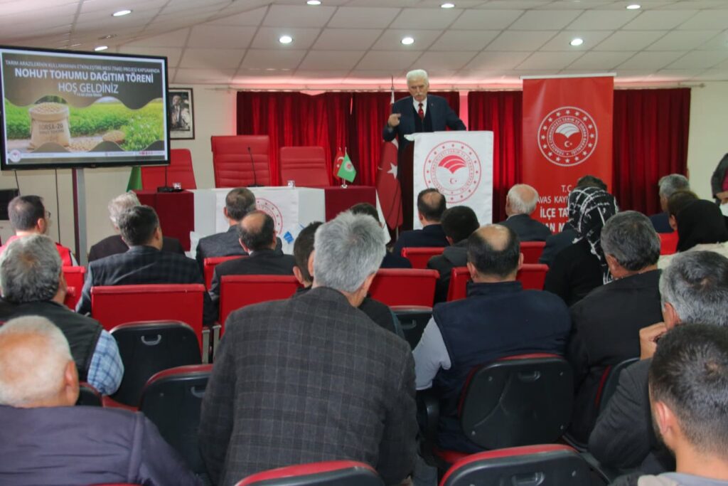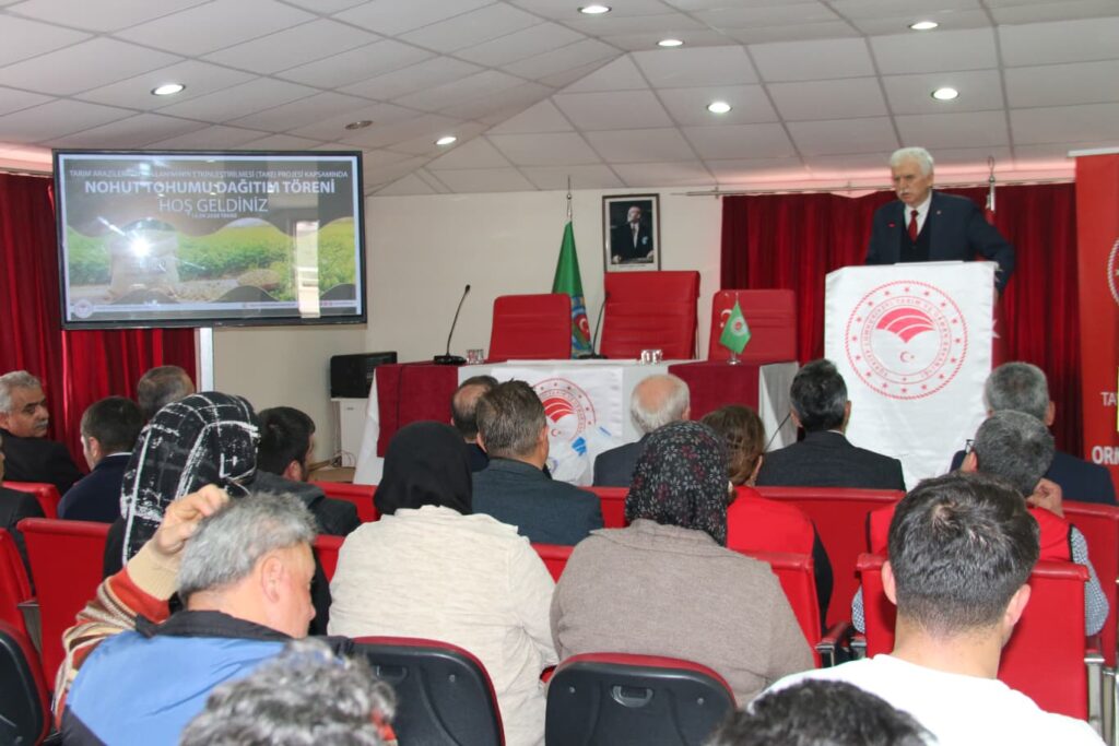 Konuşmaların ardından ilçede 25 üreticiye 3 ton Borsa-20 nohut tohumu teslim edildi.