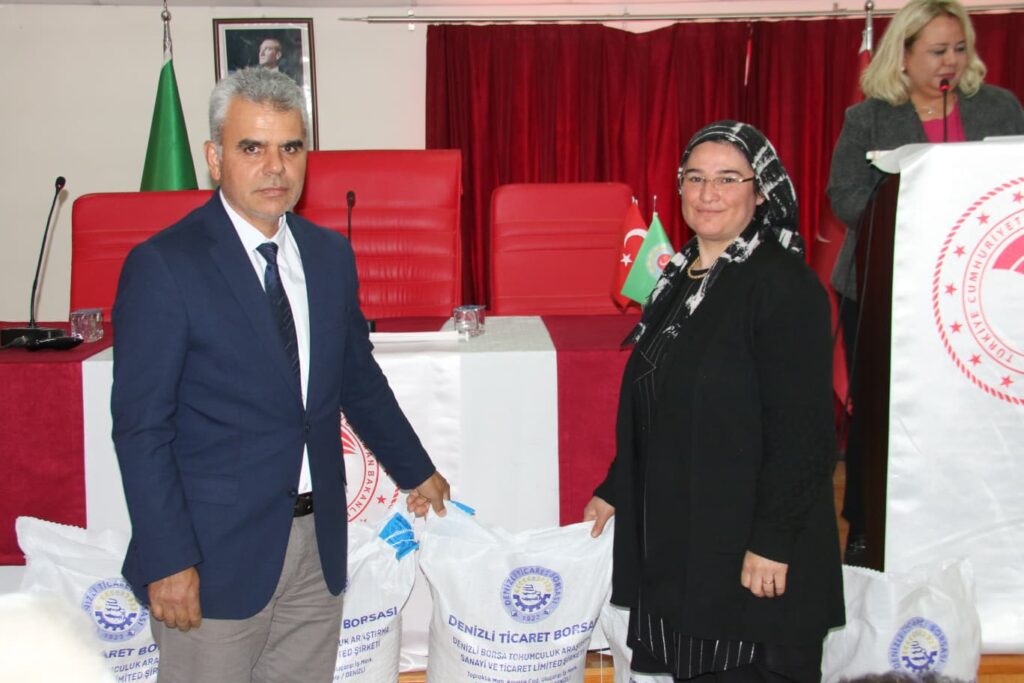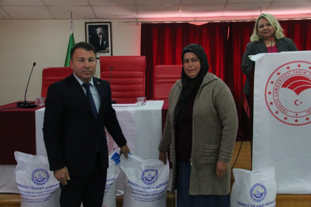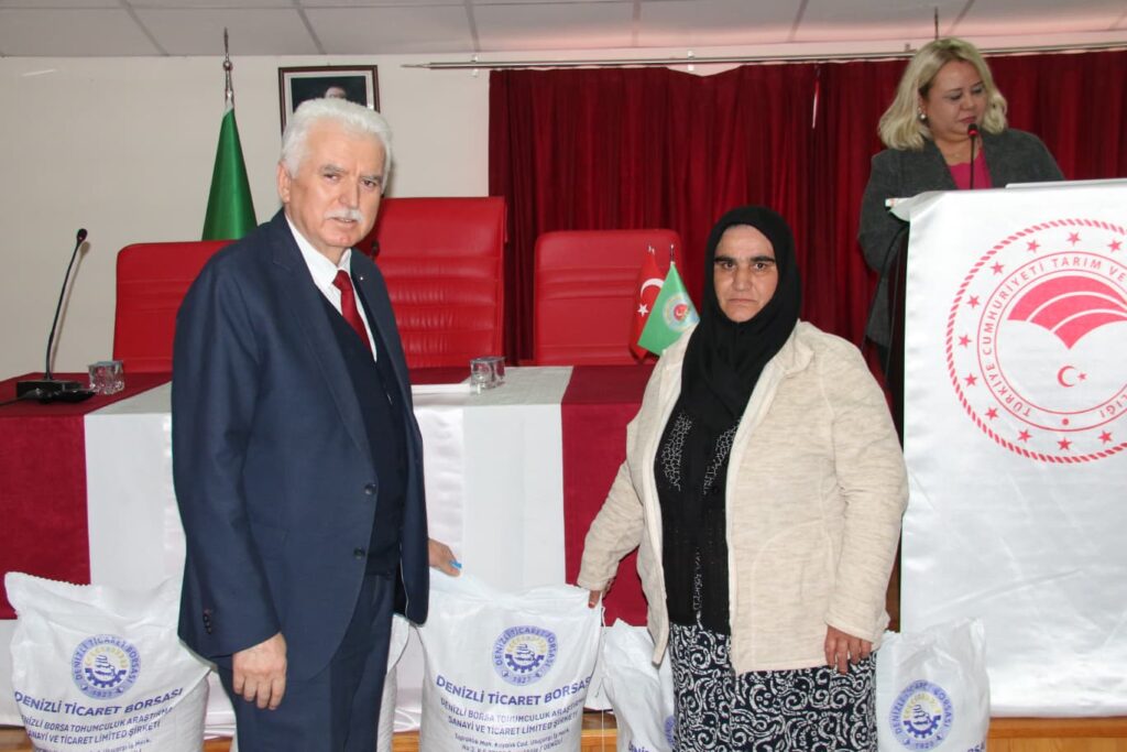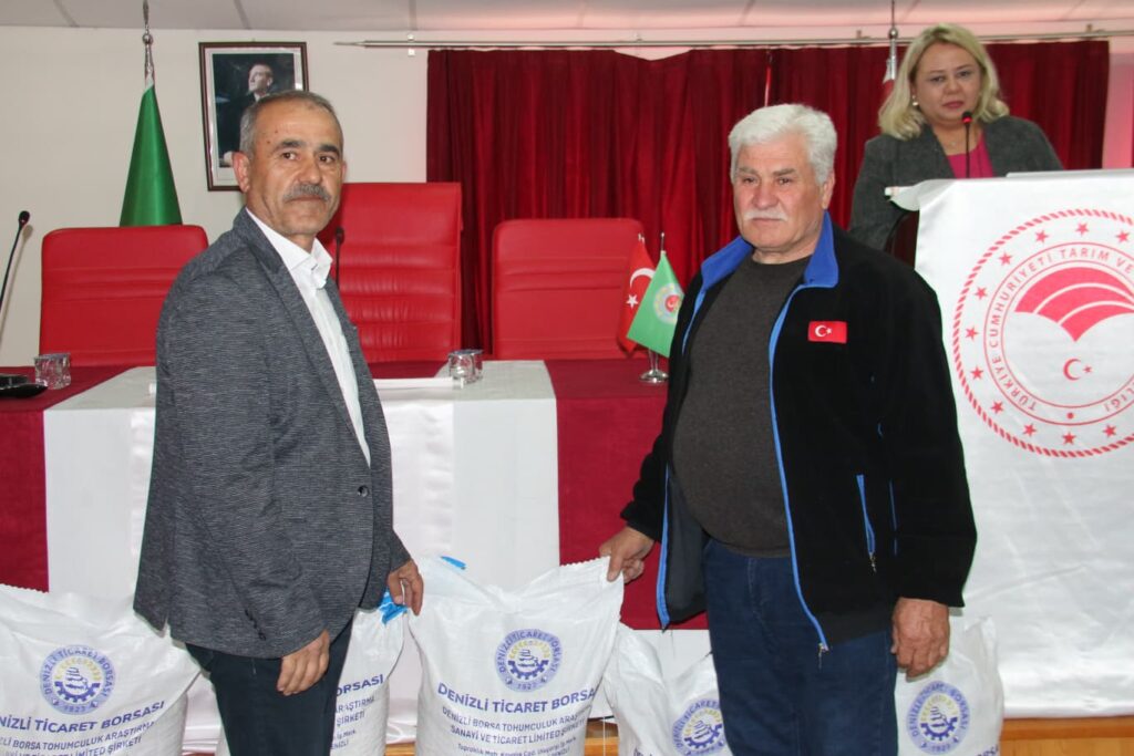 Tavas İlçesinde Tavas Ziraat Odası’nda düzenlenen tohum dağıtım törenine; Denizli Ticaret Borsası Yönetim Kurulu Başkanı İbrahim Tefenlili, Tavas Ziraat Odası Başkanı Harun Tiğre, Denizli İl Tarım ve Orman Müdürü Mustafa Nevzat Zayim ve üreticiler katılım sağladı.