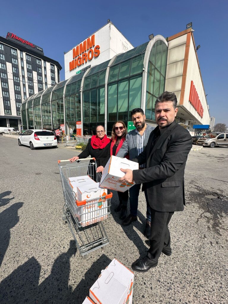 Doğu ve Güneydoğu Derneği Başaknı Bodur da, çok sayıda koli erzak hazırlayarak ihtiyaç sahiplerine ulaştırmak için Merter’de yönetim kurulu üyeleriyle buluştu.
