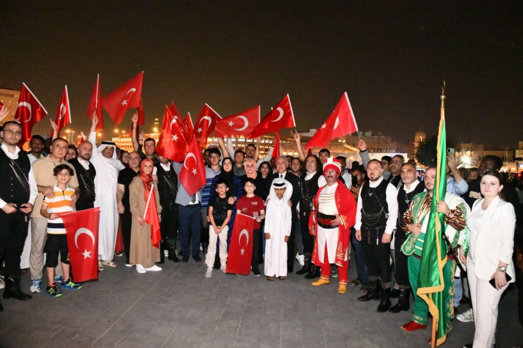 Trabzon Büyükşehir Belediyesi’nin öncülüğünde Katar’ın başkenti Doha’da düzenlenen Trabzon Tanıtım Günleri devam ediyor. Trabzon heyeti, tanıtım etkinlikleri kapsamında Doha’nın dünyaca ünlü Souq Waqif çarşısında mehter ve horon gösterileri eşliğinde yürüyüş yaptı. Doha’da hem yerel halkın hem de turistlerin buluşma noktası olan otantik çarşı Souq Waqif’teki etkinliğe Türkiye’nin Doha Büyükelçisi Dr. Mustafa Göksu, Trabzon Valisi Aziz Yıldırım ve Büyükşehir Belediyesi Genel Sekreter Yardımcısı Hasan Selim’in yanı sıra yüzlerce kişi katıldı. Katarlılar, ellerinde Türk bayraklarıyla yürüyen Trabzon heyeti ile mehter ve horon gösterilerini ilgiyle izledi.