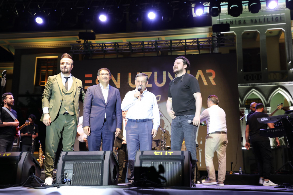 Konserde ilk olarak Ekin Uzunlar sahne aldı. Sahne performansı ve hit parçalarıyla alanı dolduran onbinlerce vatandaşa unutulmaz anlar yaşatan sanatçı, yaptığı kemençe şovlarıyla da kulakların pasını sildi. Öptüm Nefesinden, Hüznün Gemileri, Yok Elvedası ve Yokluğun Kefeni gibi dillerden düşmeyen şarkılarını alanı dolduran onbinlerce kişi ile birlikte seslendiren Uzunlar, gençlere pes etmeyerek ve çok çalışarak hayallerinin peşinden gitmeleri tavsiyelerinde bulundu. Sanatçıya çiçek takdimi için sahneye Belediye Başkanı Ömer Faruk Çelik ile birlikte çıkan Şehzadeler Kaymakamı Cemal Hüsnü Çaykara aynı zamanda hemşehrisi olan sanatçıya Manisalıların gösterdiği ilgiden duyduğu memnuniyeti ifade ederek şöyle dedi; “Çaykaralı bir kardeşimizi Manisalıların bu kadar çok seveceğini ve bağrına basacağını gözlerimle görmesem inanmazdım. Hepinize onun adına teşekkür ediyorum. Sizleri onunla buluşturduğu için değerli başkanımı Ömer Faruk Çelik’i candan alkışlıyorum. Zorlu bir dönemi atlattınız. Çalışıp esas vazifelerinizi unutmamak şartıyla eğlenmek de hakkınız. Hepinize iyi eğlenceler diliyorum” dedi. Şehzadeler Belediye Başkanı Ömer Faruk Çelik ise şöyle konuştu; “Burada bulunan onbinlerce hemşehrimiz adına değerli sanatçımıza Şehzadeler Şehri Manisamızın kalbi Şehzadeler ilçemize hoş geldiniz, sefalar getirdiniz, ayağınıza sağlık, gönlünüze, ağzınıza sağlık diyorum. Hepinize iyi eğlenceler diliyorum”