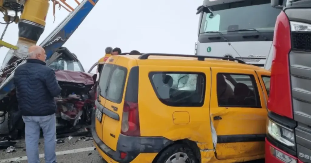 Erzurum’un Aşkale ilçesinde yoğun sis ve buzlanma nedeniyle hafif ticari araçlar ile tırların da karıştığı zincirleme trafik kazası meydana geldi.