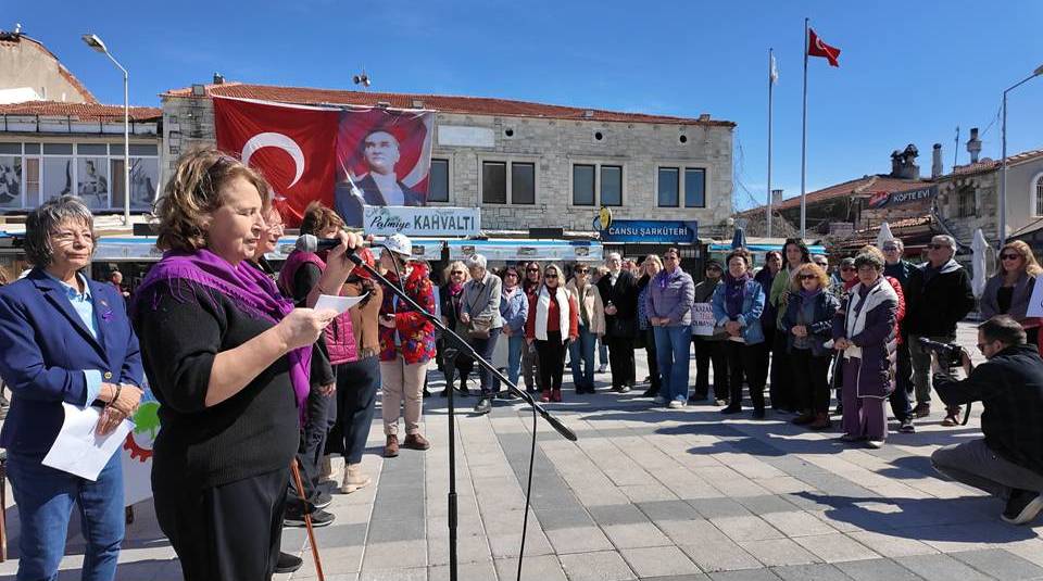 8 Mart Dünya Emekçi Kadınlar Günü İzmir’in Foça İlçesi’nde gün boyu devam eden çeşitli etkinliklerle kutlandı. Yapılan basın açıklamalarında kadın hak mücadelesinin devam ettiğine, kadınların hala şiddete, ücret eşitsizliğine ve ayrımcılığa maruz kaldığına dikkat çekildi. ABD ve İsrail’in İran’a saldırısına “Kadınların özgürlüğü, savaşla değil, eşitlikle, barışla ve kadınların kendi mücadelesiyle kazanılır” sözleriyle gönderme yapıldı.