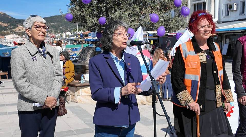 Tüm Emeklilerin Sendikası Foça Şubesi’nin Nihat Dirim Barış ve Demokrasi Meydanı’nda düzenlediği ilk etkinliğe, Foça Barış Kadınları platformu, Foça Kent Konseyi Kadın Meclisi ve bazı kadın inisiyatifleri üyeleri, Foça Belediye Başkanı Saniye Bora Fıçı, CHP İlçe Başkanı Kenan Düzgün, Kadın Kolları Başkanı Suna Saraçoğlu, bazı STK temsilcileri, sendika üyeleri ve vatandaşlarda katılarak destek verdi.