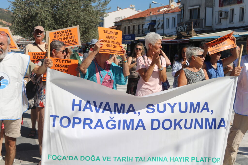 Foça Tarih ve Doğa Talanına Hayır Platformu üyeleri süper talan yasası olarak niteledikleri 7554 sayılı kanunun iptali için Anayasa Mahkemesi’ne yapılan başvuruya destek amacıyla İzmir’in Foça İlçesi’nde eylem yaptı. “İşgal Yasasına Hayır”, “Toprak vatandır vatan satılamaz”, “Havana Suyuna Toprağına Sahip Çık”, “Toprağıma Dokunma”, “Zeytin Yaşam Maden Ölümdür”, “Gün Gelecek Devran Dönecek AKP Halka hesap Verecek” dövizlerinin taşındığı, sloganlarının atıldığı eylem alkışlı protestolarla tamamlandı.