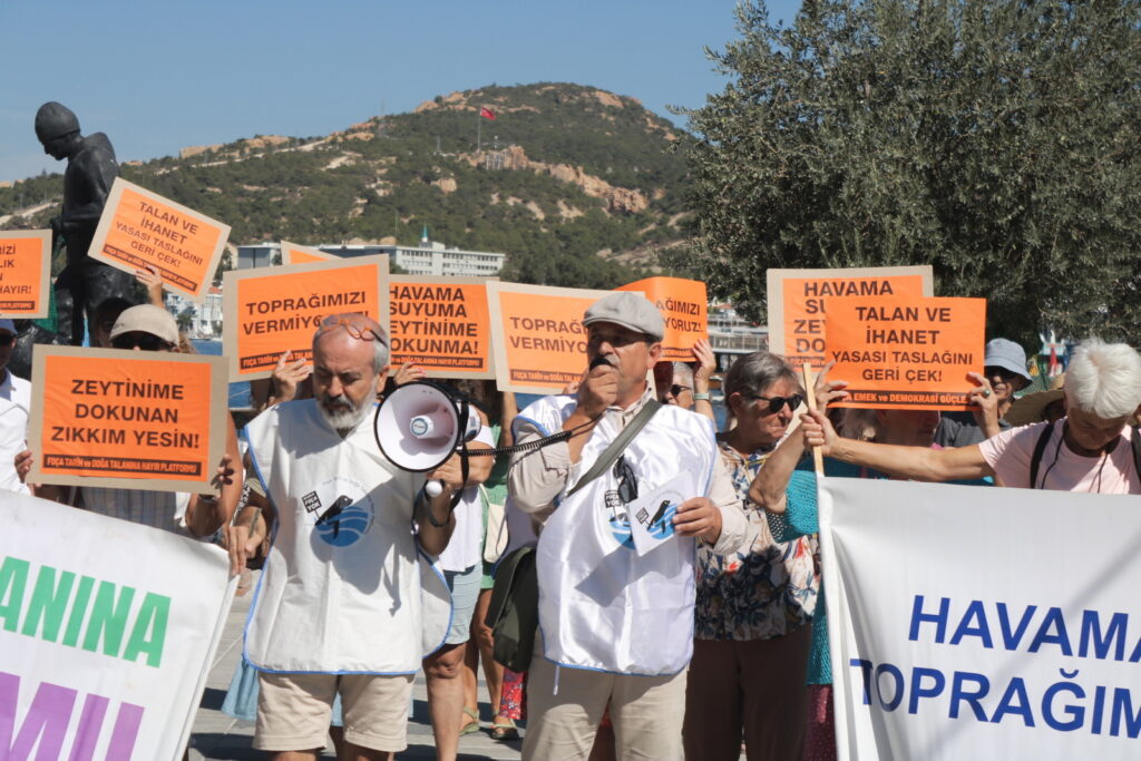 PTT Binası önünde toplanarak Reha Midilli Sevgi Yolu güzergahını takibeden ve Nihat Dirim Barış ve Demokrasi Meydanına gelen platform üyeleri adına basın açıklamasını platform sözcüsü Ramis Sağlam okudu. Ankara’da muhalefet partileri milletvekillerinin ortak imzalarıyla Anayasa Mahkemesi’ne (AYM)başvuru yapıldığı sırada alanlara çıktıklarını belirten Sağlam bu yasanın sadece zeytin üreticilerini değil tüm vatandaşları bir şekilde etkilediğini savundu.