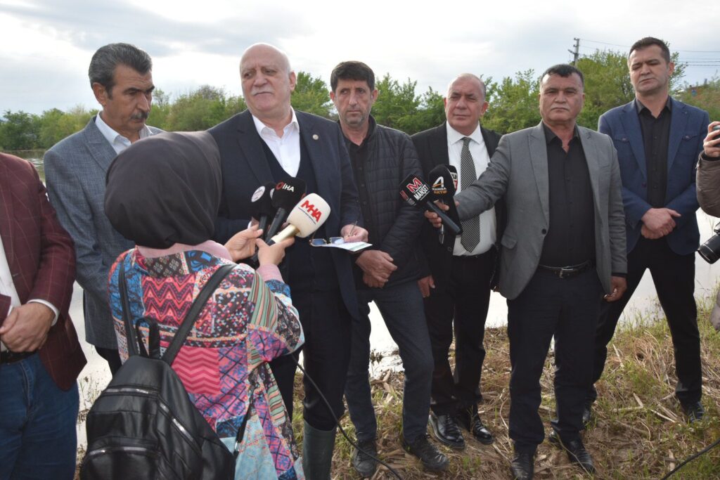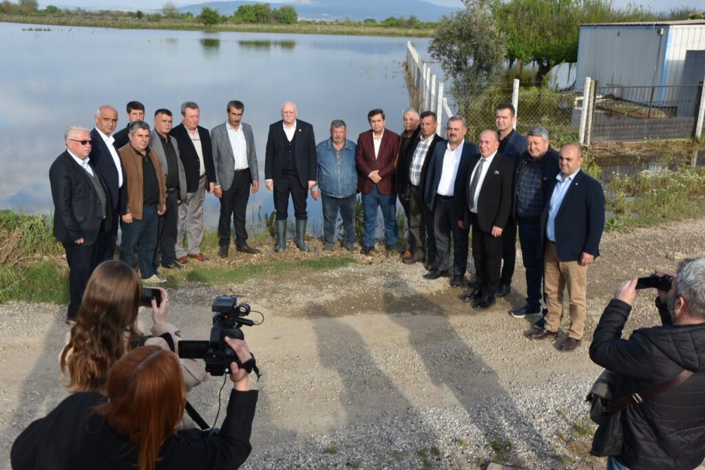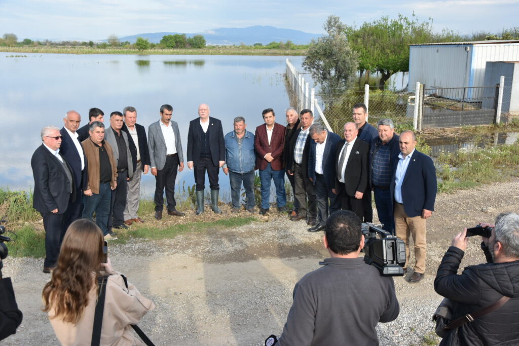 Veziroğlu Mahallesi’nde su altında kalan hububat tarlasında üreticilerle bir araya gelen Bayraktar, son yıllarda yaşanan doğal afetlerin tarım sektörünü ciddi şekilde etkilediğini söyledi.