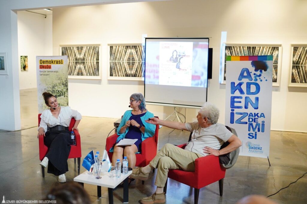 İzmir Büyükşehir Belediyesi çatısı altında faaliyet gösteren Akdeniz Akademisi’nde Demokrasi Okulu’nun ikinci dersi yapıldı. “Demokrasi Kültürü ve Sanat” başlıklı etkinlikte Prof. Dr. Sevda Alankuş moderatörlüğünde oyuncu Nazan Kesal ve yönetmen Yüksel Aksu gençlerle sanat ve demokrasi ilişkisini tartıştı.