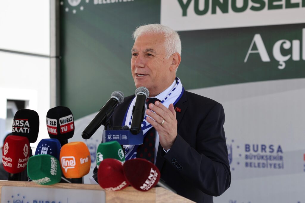 Marmara Belediyeler Birliği ve Bursa Büyükşehir Belediye Başkanı Mustafa Bozbey, 4 ay önce verdikleri sözü yerine getirmenin mutluluğunu yaşadıklarını söyledi. Kültür, sanat ve sporun olmazsa olmazlar arasında olduğunu belirten Başkan Bozbey, “Seçim döneminde ve seçimden sonra Yunuseli’ye yaptığımız ziyaretlerde gençler etrafımızı sarmıştı. ‘Bizim burada oynayacak bir yerimiz yok. Biz cadde ve sokaklarda top oynuyoruz. Bize de kızıyorlar ve oynatmıyorlar’ dediler. Muhtarımızla bir araya geldik ve ‘Acilen burada yer bulalım. Çocuklarımız sokaklarda değil, çim sahada ve tesisi olan bir yerde oynasınlar’ istedik. Hem dostluklar kuracakları hem sosyal ilişkiler kuracakları hem de aileleriyle güzel zaman geçirebilecekleri bir alan oluşturmak istedik. Bugün tesisi açmanın mutluluğunu gençlerimizle birlikte yaşıyoruz” diye konuştu.