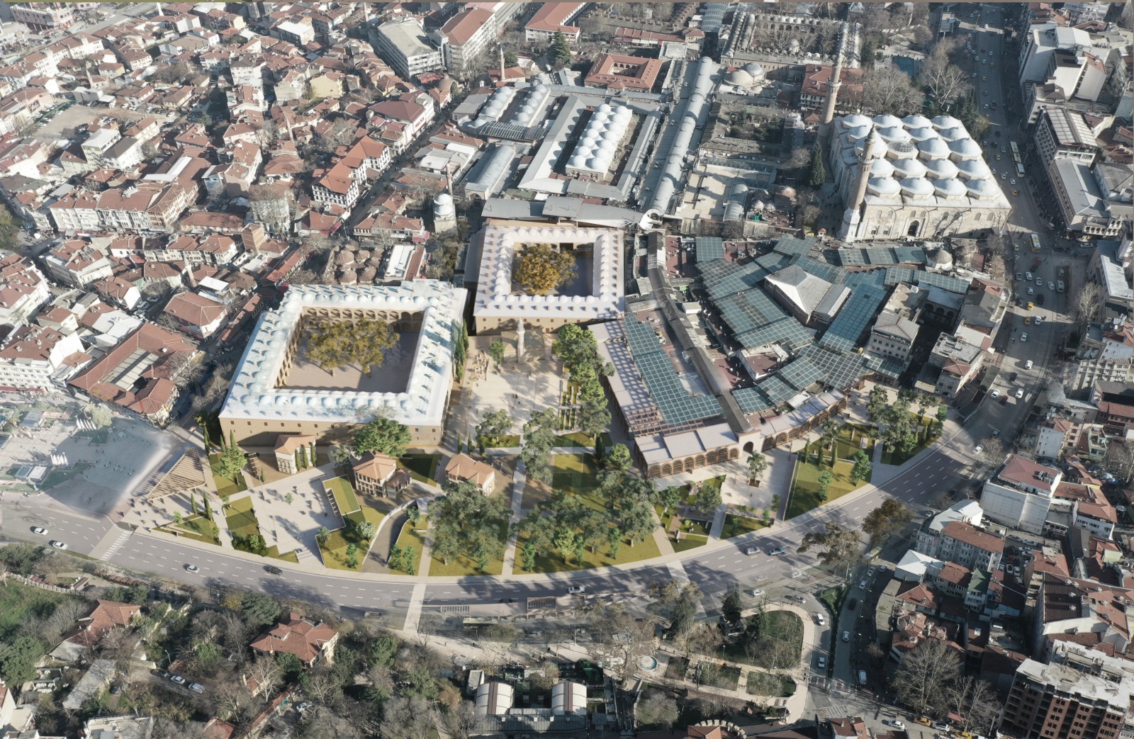 Osmanlı’nın ilk başkenti olan Bursa’da 14. yüzyılda oluşmaya başlayan, 16. yüzyılda han, bedesten ve çarşıların gelişimiyle sürecini tamamlayan Tarihi Çarşı ve Hanlar Bölgesi’ni eski ihtişamına kavuşturacak proje, etap etap ilerliyor. Büyükşehir Belediyesi’nin Çevre ve Şehircilik Bakanlığı tarafından da desteklenen projesinde, yıkım çalışmaları 2020 yılı ağustos ayında Çevre Şehircilik ve İklim Değişikliği Bakanı Murat Kurum’un da katıldığı törenle başlamıştı. Alışveriş merkezine ait yapıların da aralarında olduğu toplam 38 binanın yıkımıyla 5 bin metrekareyi aşkın alan açığa çıkarılmıştı.
