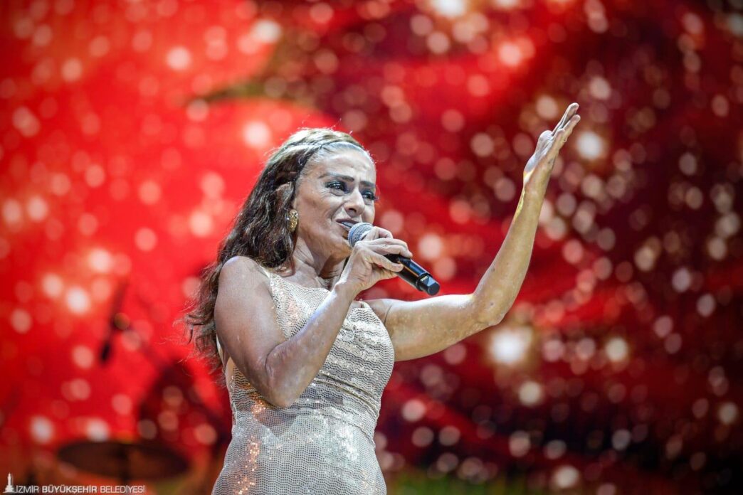 Daha çok dans etmek istediğini ancak yaşlandığını söyleyen Tilbe, “Ne güzel görünüyorsunuz. Maşallah size. Ben nasıl görünüyorum? Güzel görünüyor muyum? Hepinize çok teşekkür ediyorum. Canım İzmir. İzmir’i çok seviyorum. Aslan memleketim. Gönlümün yâri İzmir” dedi.