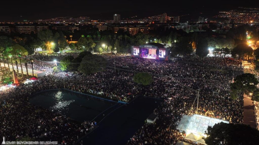 İzmir Büyükşehir Belediye Başkanı Dr. Cemil Tugay, eşi Öznur Tugay ile 94’üncü İEF kapsamında, çim konserlerinde sahne alan ünlü sanatçı Yıldız Tilbe’yi dinledi. Binlerce İzmirlinin akın ettiği fuarda konsere de büyük ilgi vardı. Tugay çifti Yıldız Tilbe’nin sevilen şarkılarına eşlik etti. Konsere katılanlar da cep telefonları ile çekim yaparak o anları ölümsüzleştirdi. Yıldız Tilbe hayranları, dansıyla göz dolduran sanatçıya hep bir ağızdan eşik etti.