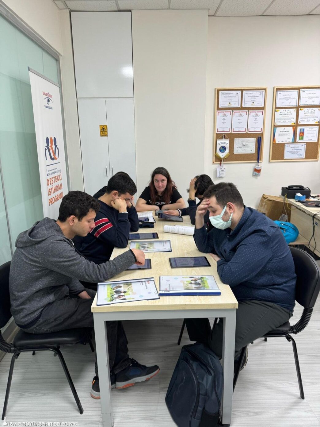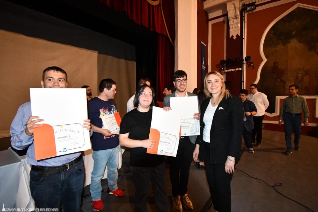 Türkiye’de ilk kez İzmir Büyükşehir Belediyesi tarafından kurulan Destekli İstihdam Ofisi, nöro-çeşitli ve zihinsel engelli bireyleri iş hayatına hazırlayan İŞ-İN İş için Nitelikli Kazanım Programı’nın ilk eğitimlerini tamamladı. Yaklaşık üç ay boyunca özgeçmiş hazırlama, mail atma, iş hayatında uyulması gereken kurallar gibi kapsamlı bir eğitim alan 15 genç, eğitim sonunda sertifikalarını alarak iş arayışına başladı. İŞ-İN eğitimleri bu hafta yeniden başlayacak ve yıl boyu devam edecek.