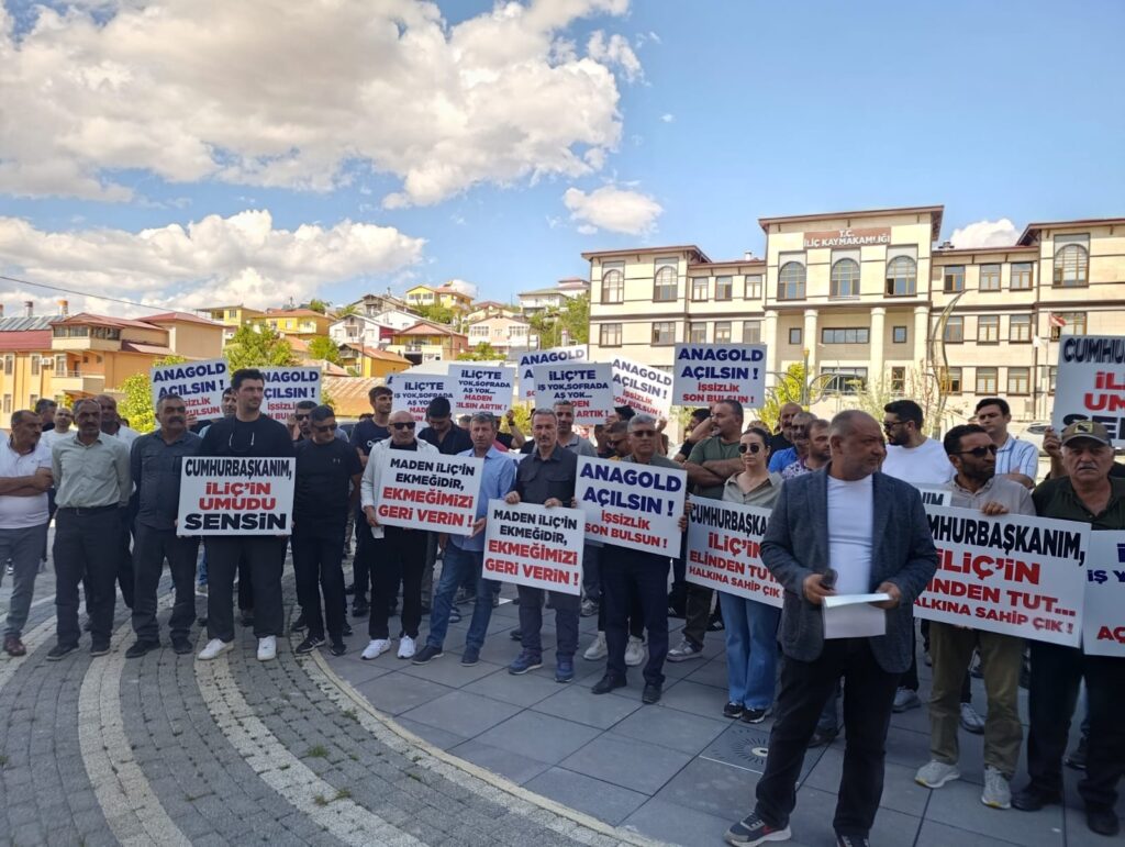 Erzincan’ın İliç’te bölge halkı, Anagold Çöpler Madeni’nin 19 aydır üretime ara vermiş olması nedeniyle yaşadıkları mağduriyeti duyurmak için ortak basın açıklaması gerçekleştirdi.