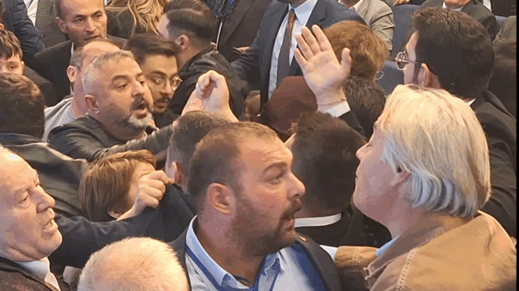 İYİ Parti Ankara İl Kongresi’nde, İl Başkan Adayı Kerem Erdem’in konuşmasında “Delegelere imzalar zorla attırıldı” iddiası üzerine salonda gerginlik çıktı. Adaylar Yener Yıldırım ve Kerem Erdem’i destekleyen partililer arasında sözlü tartışmalar yaşanırken, tansiyon bir süre yükseldi.
