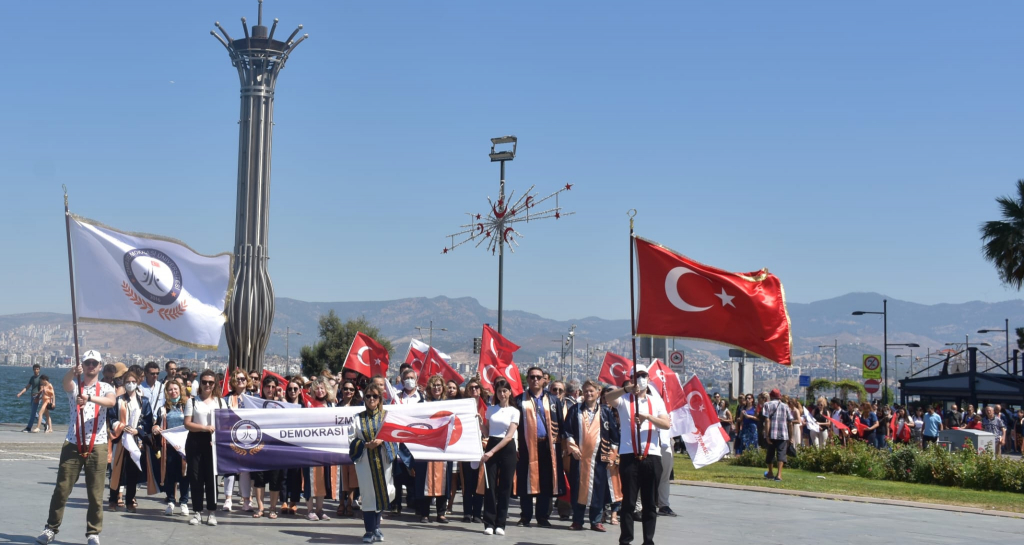 İzmir Demokrasi Üniversitesi, 15 Temmuz Demokrasi ve Milli Birlik Günü etkinlikleri kapsamında Rektör Prof. Dr. Bedriye Tunçsiper öncülüğünde akademik ve idari personelin katılımıyla geleneksel hale getirdiği “Demokrasi Yürüyüşü’nün beşincisini gerçekleştirdi.